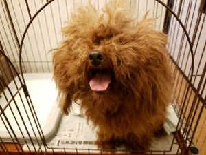 プードルの子はガチガチの毛玉が皮膚までべっとりくっついていて、ほぐそうにも全くほぐれません。