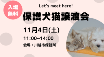 川越市保健所で「保護犬・保護猫の譲渡会(令和5年11月4日)」を開催します(外部リンク:川越市役所)