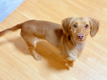 アクアくんとルビーちゃんは、同じ崩壊現場で一緒に保護されました。他にも、同時に募集中の「りんちゃん」と子犬2頭も同じ現場の仲間です。シェルターではボランティアさんたちと初対面でありながら、人見知りせず、物怖じしないとてもフレンドリーな性格です。楽しそうに追いかけっこをしている姿が見られました。