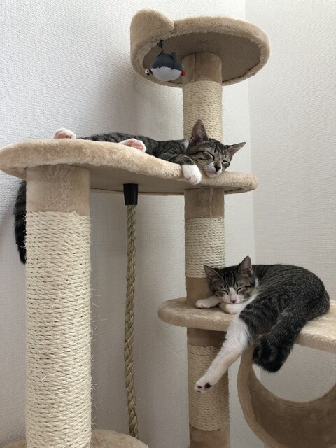 おもちゃで遊んだり、だいぶ家にも慣れた様でキャットタワーで寝たりジッとテレビを見たりしてゆっくりする様になりました。