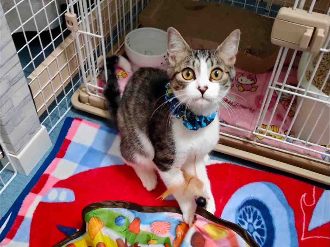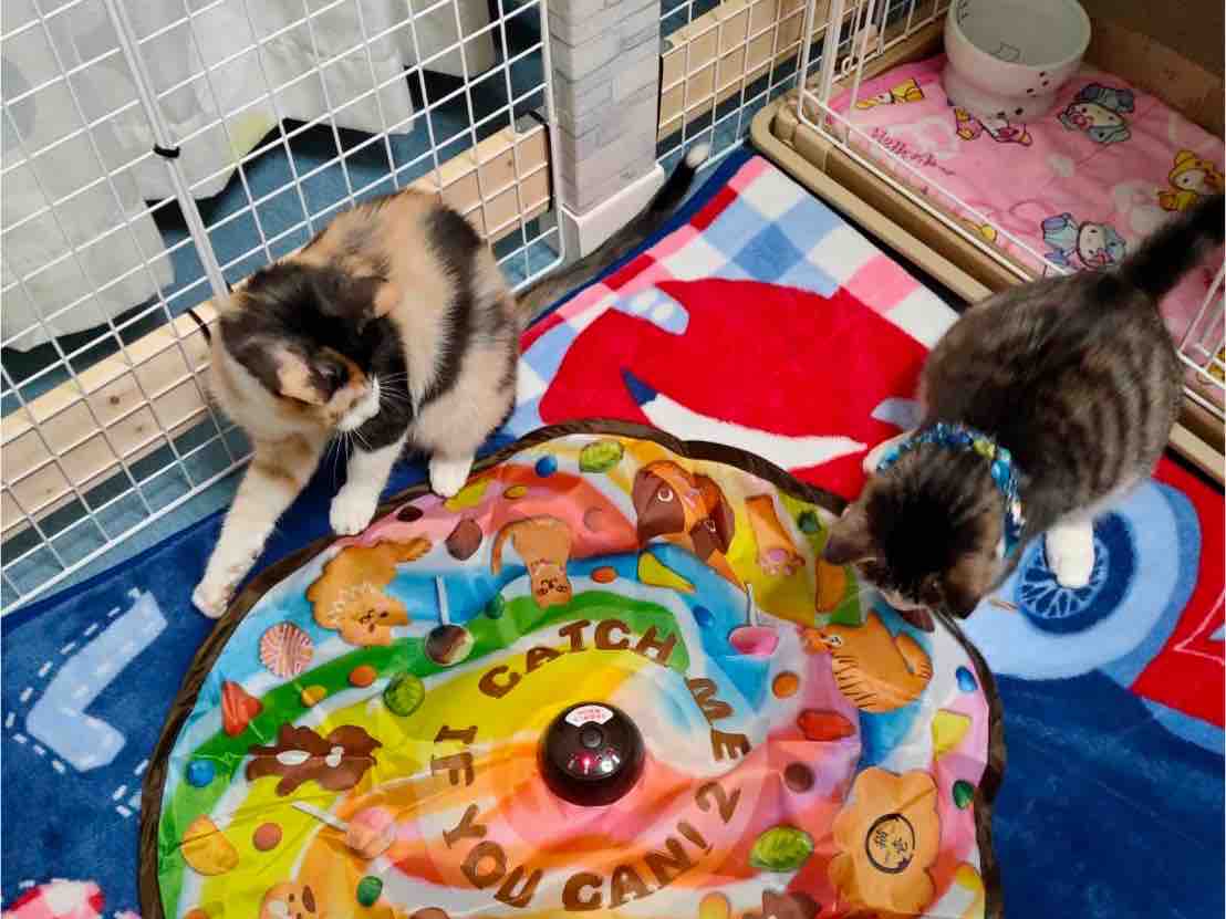 おもちゃが大好き。いつも人のそばに寄ってきてくれますが、怖がりさんなのでナデナデや抱っこはまだ得意ではありません。