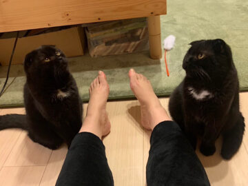 ホクくんは朝だけよそよそしいですが、人に興味があり、カイくんとの架け橋にもなってくれています。ホクくんもカイくんも朝夕おもちゃで遊んでくれており、カイくんはリビングにあるキャットタワーで一日中過ごしています。我々のQOLもぐんと上がり、毎日幸せを噛み締めております。