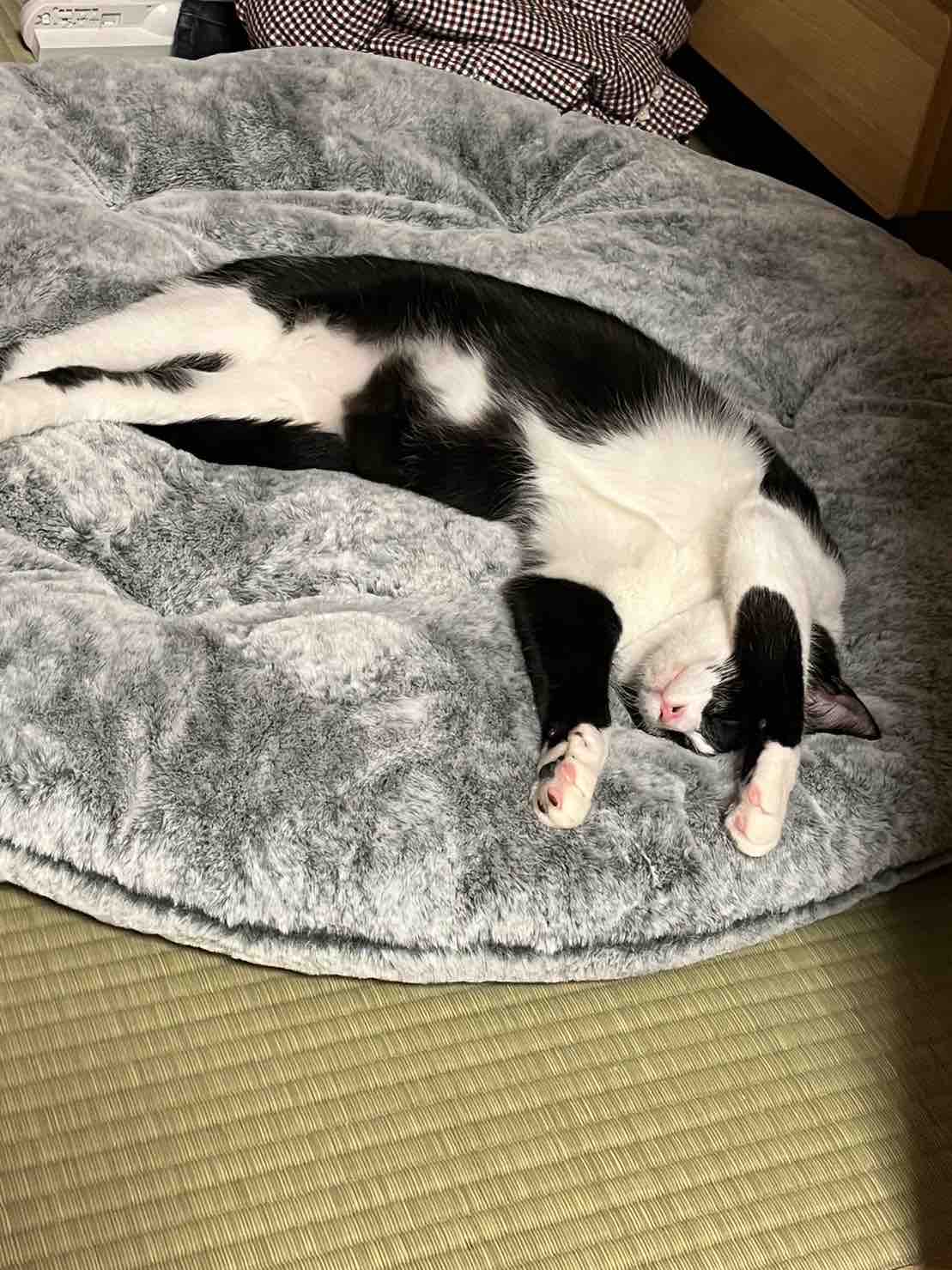 好き嫌いがなく、食欲も旺盛です。寝る時はやはり仲良し兄弟の信長(のぶなが)くん、秀吉(ひでよし)くんと一緒に寝ている事が多いです。
