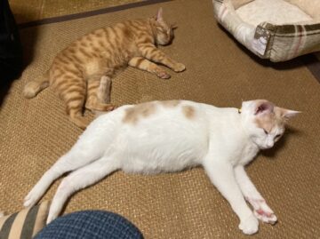 ボランティアの方々や、支援者の皆様によって救われ、愛情を込めて育てられたはちちゃん(いくらちゃん)きゅうちゃん(たらちゃん)を、我が家の家族としてお迎えできる事になりました。人間達は毎日2人から愛情を頂き、癒されております。ありがとうございます。はちちゃん、きゅうちゃんが幸せに、楽しく今後の人生(猫生?)を全うできるよう責任を持って育てて行きたいと思います。