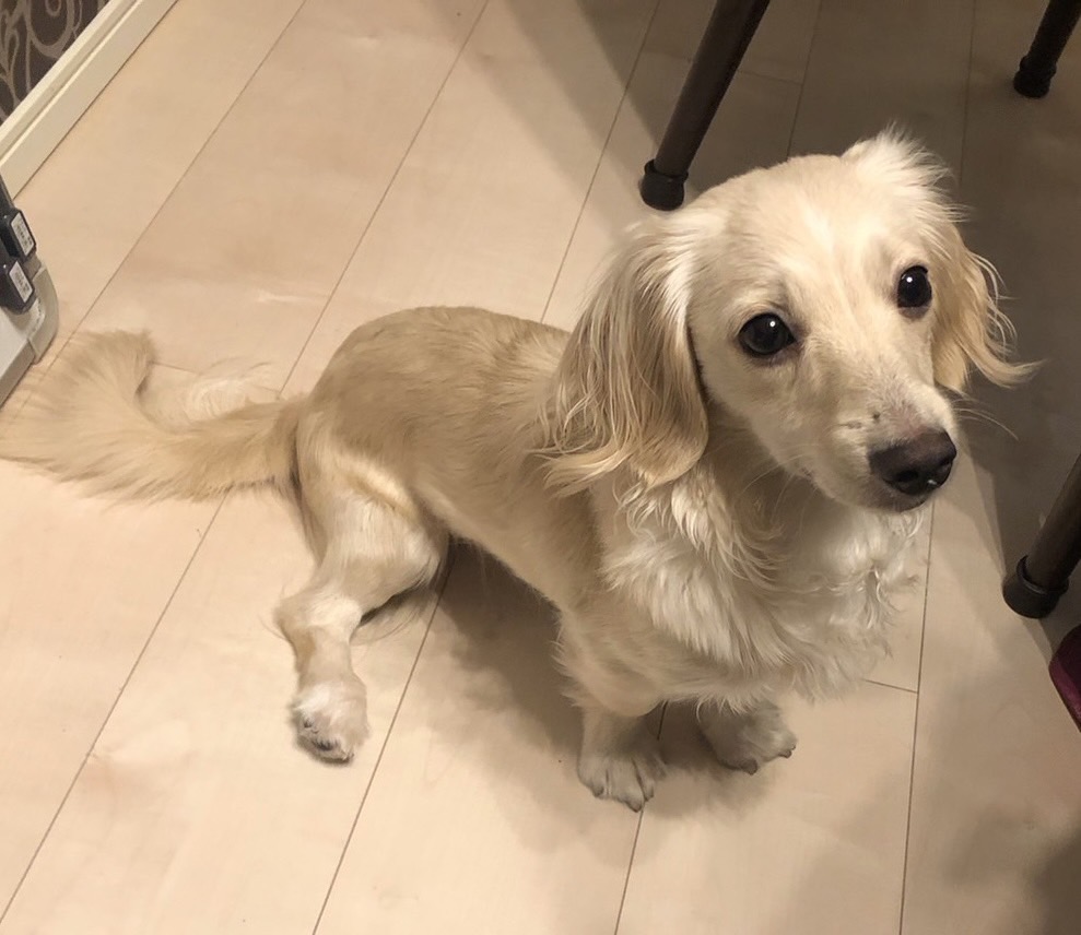 とにかく元気いっぱいの男の子。ミニチュアダックスフンドとマルチーズのMIXのようです。