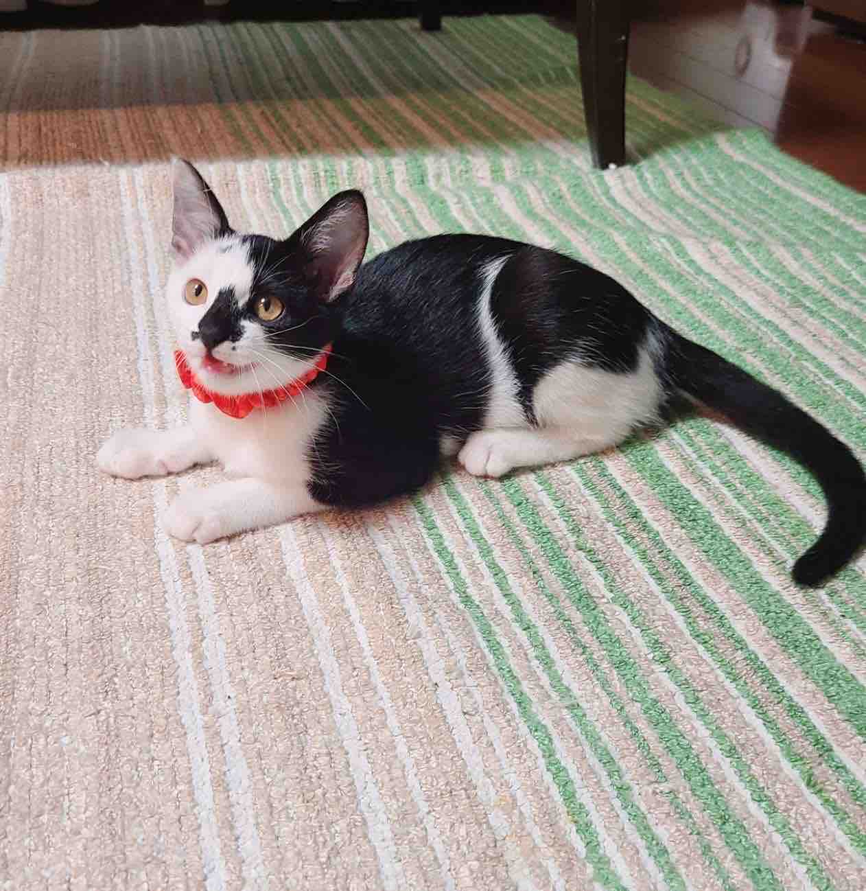 ママのいない5頭の兄弟にとって、私たちボランティアがママの代わりとなれるよう24時間体制でミルクをあげて育ててまいりました。外での生活をほとんど知らずに育ちましたので警戒心がほとんどなく、とても人懐っこく育っています。コアラちゃんは肩乗りネコちゃんです。おんぶや抱っこが大好きで、人がしゃがんでいると、背中からよじのぼって肩の上まで登ってきます。人が大好きでとっても好奇心旺盛。いつも人の行動をよく観察していて、一緒に何かしたいようです。天真爛漫で明るい女の子です。
