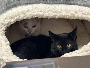 引き取った初日は、元々飼っている猫と仲良くできるか不安でしたが、最初の方は多少距離がありつつも、3日もたてば一緒に遊んだり一緒に寝たり2人で遊ぶ機会が増えてくことに喜びを感じています。これからも黒豆くんの成長を見守りながら元気に育ってくれるといいなと、心から思います。本当にありがとうございました。