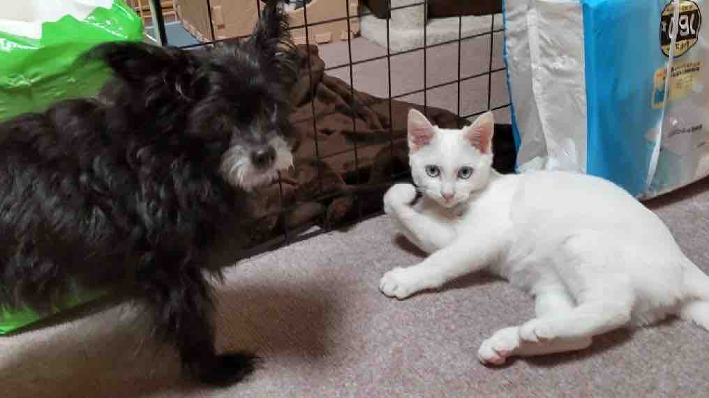 生意気な時期なのか、先住猫にちょっかいかけては怒られています。全然こりていませんが。犬とよく遊んでいます。まめくんのおかげで、猫好きの犬が元気になって、家族みんな感謝しています😊