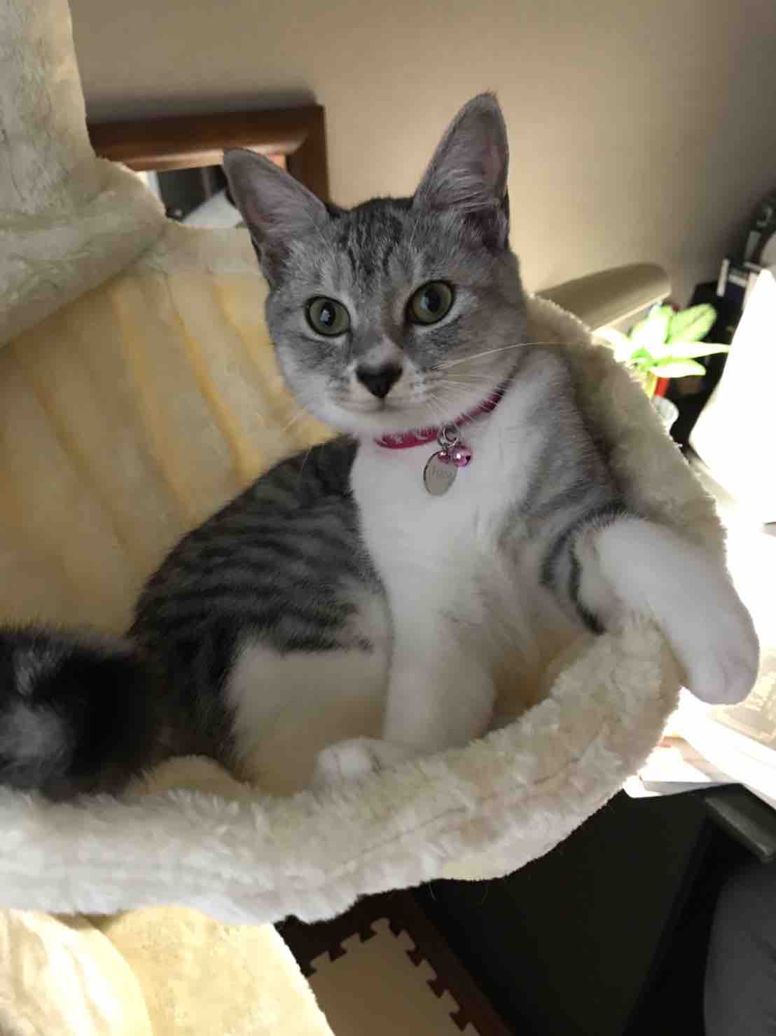 お水も良く飲んで、良く遊び、良く眠りです。専用ベッド、ケージ内、私の布団の中、ソファ、キャットタワーと、自由に移動し、寛ぎ、眠る様子がみられます。お陰様で良い出会いができ感謝しています。