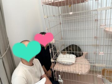 ゆめなちゃん(アメリカンカール)も同じお家から来ましたが、マリアちゃんとは特段、仲が良いわけではなさそうです。最初は同じお家の子なので一緒の方が良いかと思い、一緒に過ごせるようにしていましたが、ゆめなちゃんが自由に動き回る一方、マリアちゃんはおとなしく遠慮がちに端っこで丸まっていました。時々、ゆめなちゃんにシャー!っと怒られてマリアちゃんが小さくなることがありました。いまは別々に過ごすことで二人とも穏やかな表情を見せてくれています。