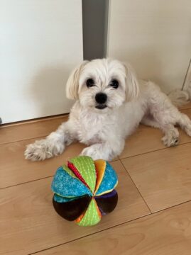 みくちゃんの最近のブームは、毛布をホリホリすることです。毛布の中に自分だけのおもちゃを隠したり、居心地の良い場所を作ってくつろいでいます。とっても可愛らしい癒し系わんこです。涙やけが比較的少なく、くりくりと大きな美しい目をしており、明るい表情がいつも輝いています。また耳の毛はツヤツヤしていて、若々しい印象があります。