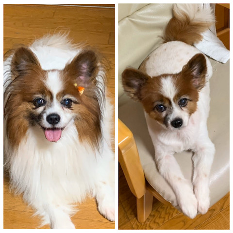 サマーカットしてきました。夜は一緒の布団でよく寝てくれています。お出かけも、当初は少し吠えましたが、すぐに慣れ、椅子の上で寝て待っています。車でのお出かけは苦手なようで、おゲロロしてしまいました💦毎日楽しく過ごしてくれていると思います😊