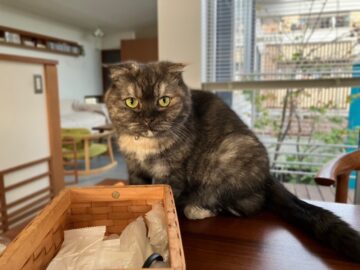 美しいグリーンがかった瞳と、愛らしい折れ耳がチャームポイント。もこもことした肉厚な毛並みは、見ているだけで触れたくなるようなやわらかさで、ちょっぴり太めのしっぽもとてもかわいらしいです。