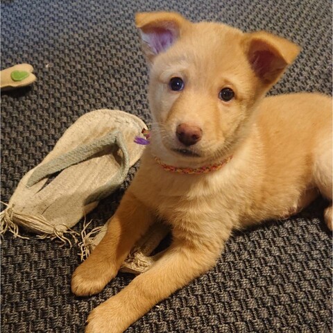 日中はだいぶ慣れてきたからなのか、部屋中を徘徊し、ソファーカバーを引っ張ったり、スリッパやぬいぐるみをブン回して遊んでいます。声をかけるとやってきて、手や服を甘噛みし始めます。結構激しいので今教育中です。