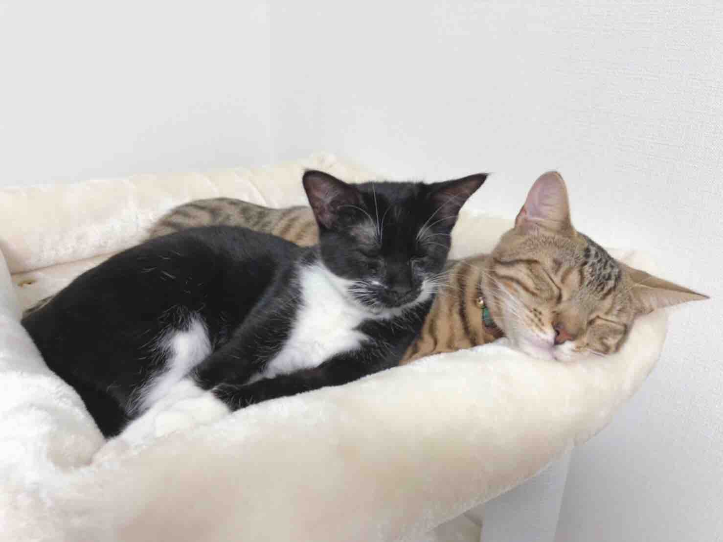 先住猫とも、とても仲が良く1日の大半を一緒に過ごしています。ご飯も一緒、お水も一緒、寝るときもくっついて寝ていて、微笑ましいです‼️2匹を見ているととても幸せな気持ちになり、すももちゃんを迎え入れて本当に良かったと感じております❗️