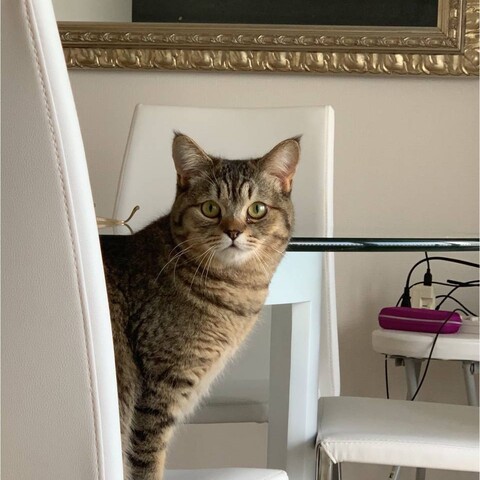 お客様が来ても物怖じすることなく近寄っていきますので、皆に可愛がってもらっております。爪研ぎもトイレも指定の場所以外では絶対にしないので品行方正です(笑)甘えん坊で膝に乗ってくると愛らしくて仕方ありません。大切に育てて参ります。