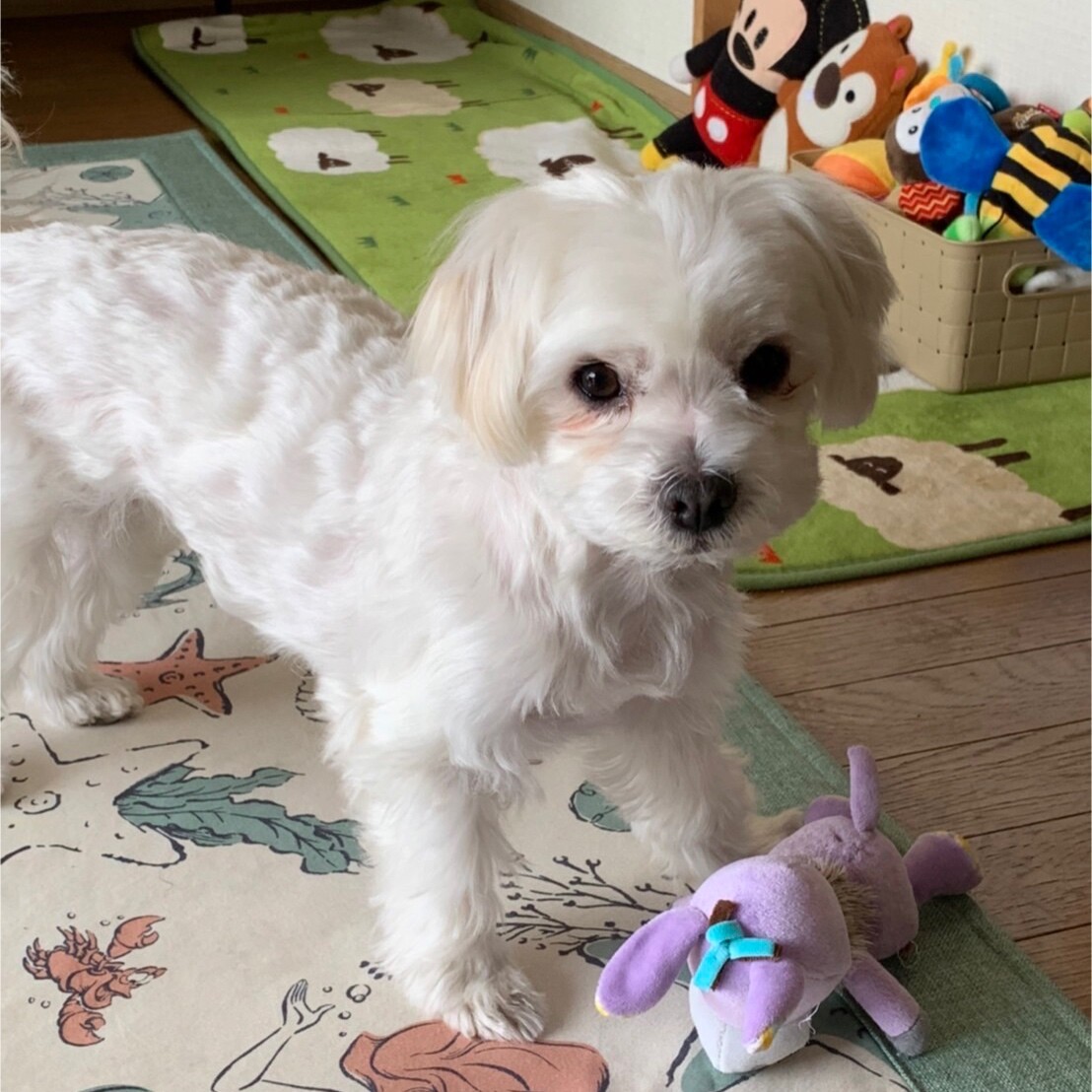 おもちゃ集めが趣味のつみれちゃん。毎日、たくさんのおもちゃを集めて、寝床にいっぱい並べています。実は、たくさんあるおもちゃの中でも、つみれちゃんがとくにお気に入りのお人形があったりします。とてもおとなしい性格で、お友達のワンちゃんたちがかけっこをしたり、じゃれたりして遊んでいても、つみれちゃんは一人で黙々とおもちゃで遊んでいます。ふかふかのベッドが大好きで、大好きなおもちゃに囲まれてお昼寝するのが好きです。ケージなど狭い場所に閉じ込められるのが苦手です。かなりジャンプ力が高いため、高さのあるサークルでも簡単に飛び越えて出てきてしまいます。