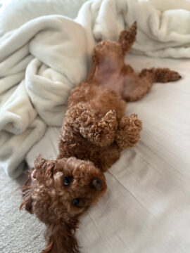 とことん天然な女の子、ゆりちゃん。おもちゃよりも人の愛情を求める、ちょっと変わった子。お友だちと遊ぶより、人の膝の上でまったりするのが大好き。遊びに誘っても『きょとん?』からのポケーっと鑑賞タイムのマイペースな、ゆるふわ癒し系。ごはんタイムにはピョンピョン跳ねて喜びます。自由が大好きなので、狭い空間やケージはちょっと苦手。でも、環境の変化には意外と動じないところが魅力で、初めてのお散歩では、全然歩かないものの、緊張しないし、へっちゃらな、意外と大物なんです。おトイレトレーニングはまだまだお勉強中ですが、トリミングはプロも認めるお利口さんです。「おすわり」「おて」「おかわり」は100点満点、完璧に上手にできます。